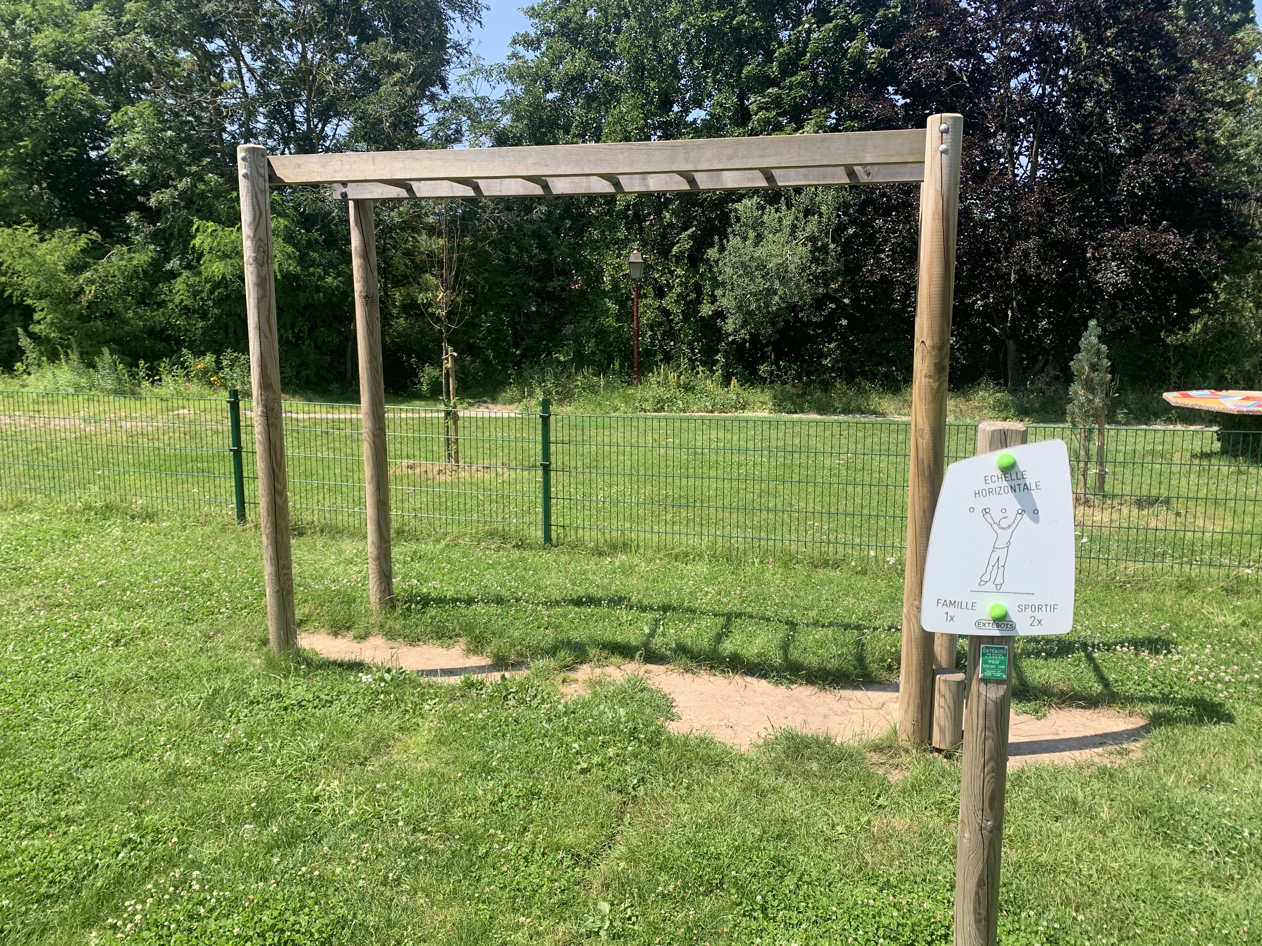 Air de jeux sympa pour les enfants et pour les adultes car il y a qql dispositifs extérieurs de de maintien en forme.