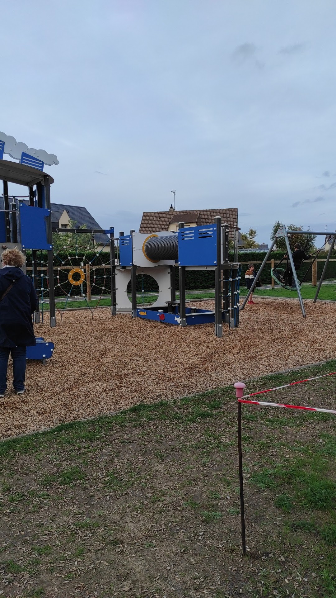 Très jolie aire de jeux sur le thème du bateau. Avec plein de possibilités. Malheureusement ; après la pluie ; l'eau stagne et rend l'utilisation des installations délicate