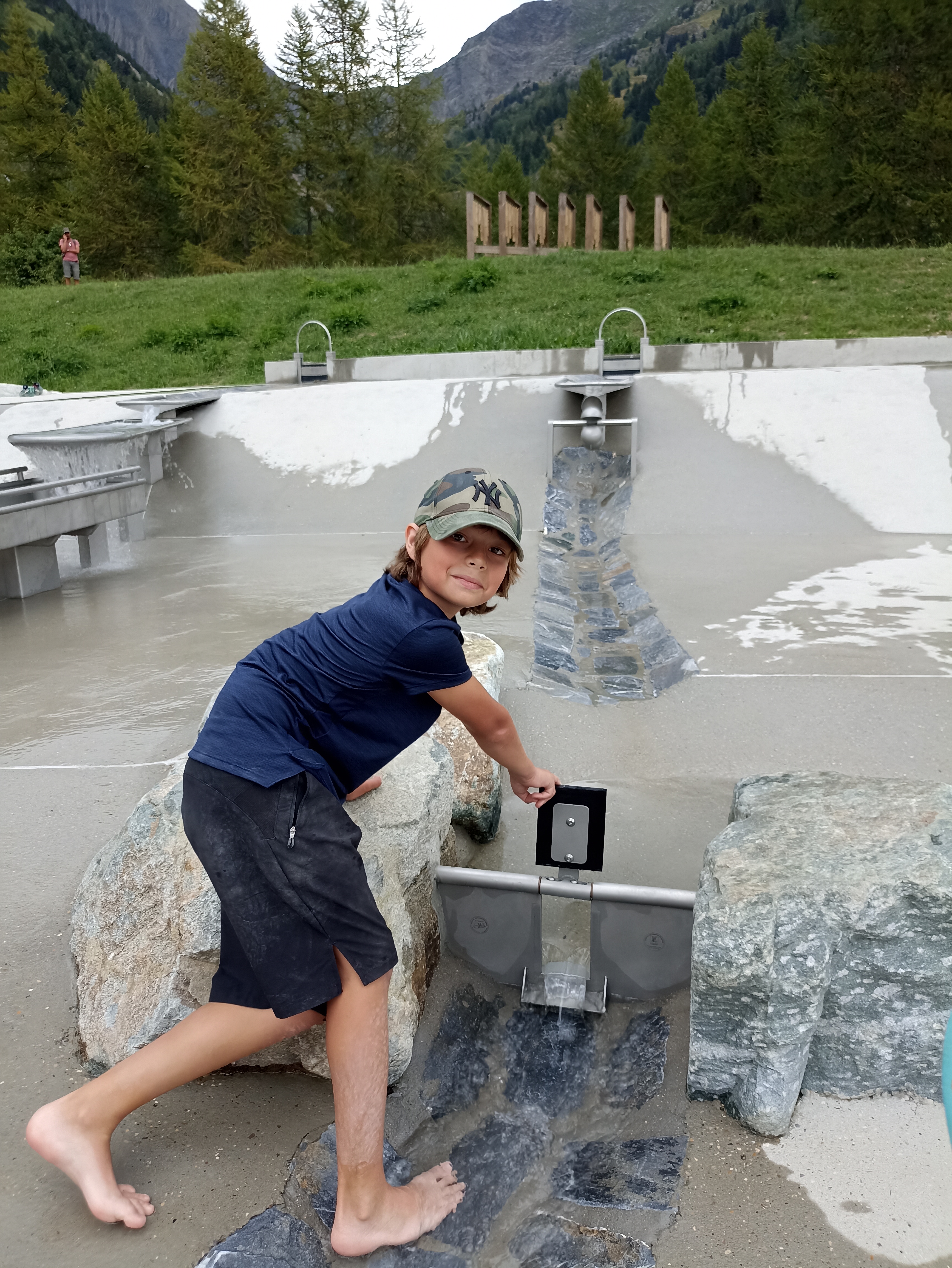 C'est un endroit spectaculaire où aller, surtout avec des enfants. Il propose de nombreuses activités : un pumptrack pour les débutants et un autre pour les plus avancés. Il y a des balançoires, un mur d'escalade, une tyrolienne, deux courts de tennis (ils vous donnent des raquettes pour jouer, je pense qu'il faut payer quelque chose mais ce ne sera pas grand-chose). Il y a des pistes de pétanque, trois grands toboggans. Un parcours sensoriel à faire pieds nus avec différentes textures (herbe, pots de fleurs, petites offrandes, grosses pierres...). Et cette année, comme nouveauté, ils ont aménagé un espace pour jouer avec l'eau, avec des vannes, des ruisseaux, une petite roue à eau, des jets d'eau... Très très ludique. Ce site se situe à environ 2 kilomètres de Vaujany. On y accède facilement en voiture ou par un train gratuit qui part des places centrales de Vaujany. Le train à lui seul vaut le coup avec des enfants