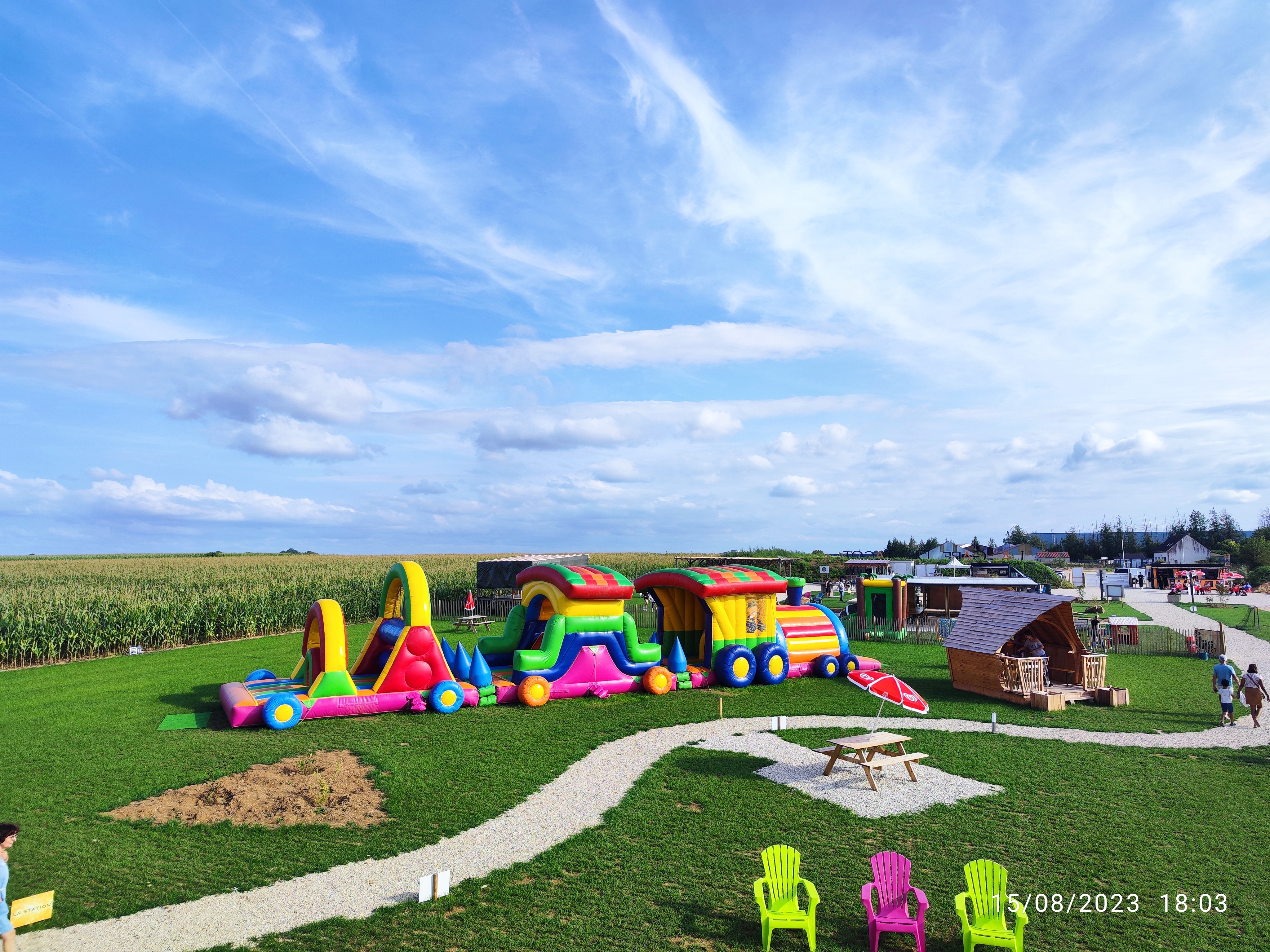 Site juste extraordinaire, joie des enfants, ados et adultes, le personnel est incroyable, accueil très chaleureux, à l'écoute, activités et animations au top. Un endroit très convivial, propre, confort ++ , au milieu de verdure, champ de maïs et soleil couchant. Magnifique. Fidèle depuis l'ouverture . Un petit air de vacances entre famille et amis. Je recommande à 3000 % et bravo au personnel.