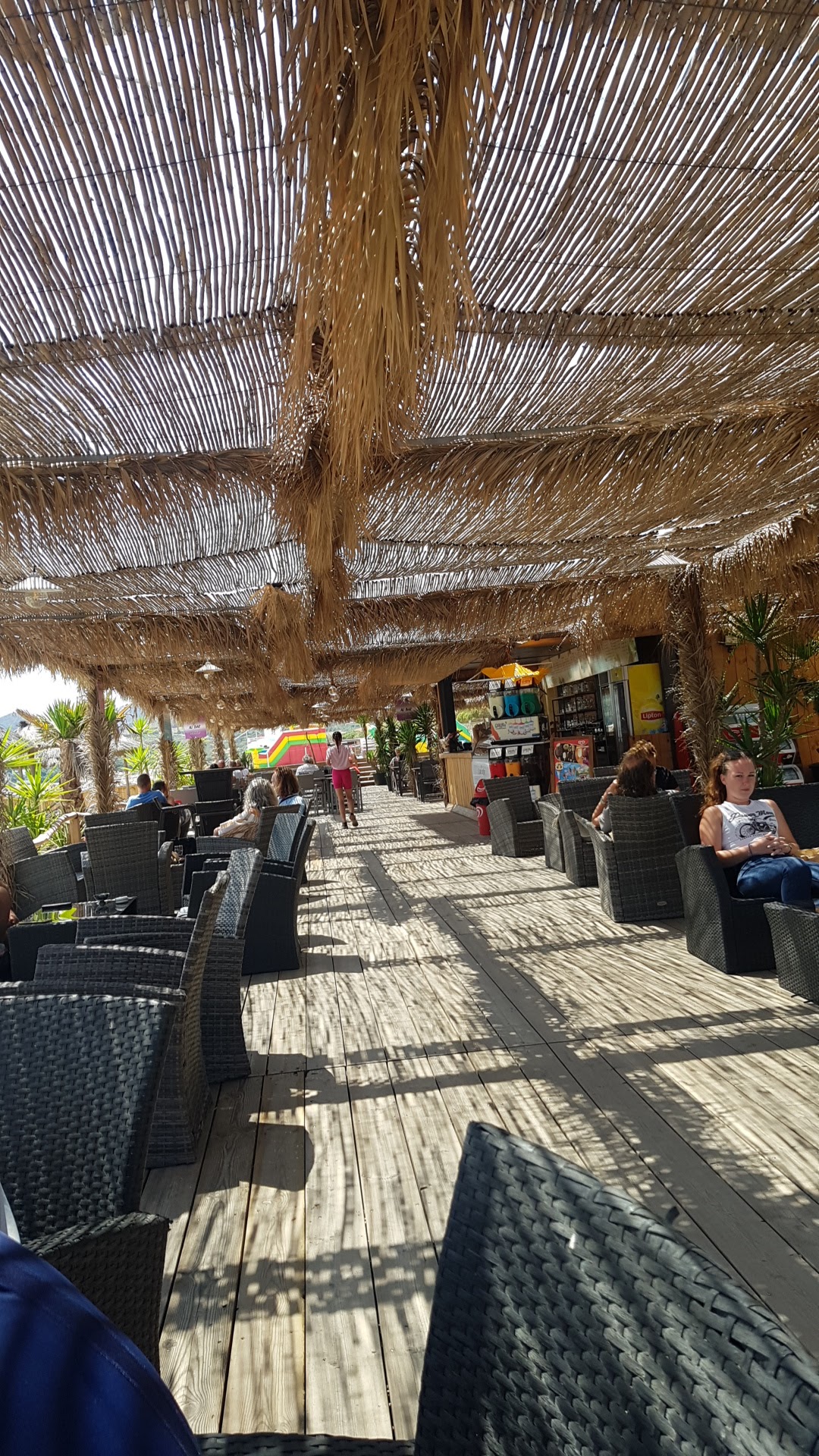 Posté le 06/08/2023 à 06:33" Belle plage. Le sable est plutôt grossier, mais il présente l'avantage qu'en cas de vent, il ne vole pas. Il y a des magasins et des restaurants à proximité. La plongée en apnée est bonne au port et vous pouvez toujours voir quelques poissons. Il y a deux plages pour chiens (voir photo). Sinon, les chiens sont interdits. Boire de l'alcool et fumer la chicha sont également interdits (voir photo). La plage n'est pas trop fréquentée même le week-end. "