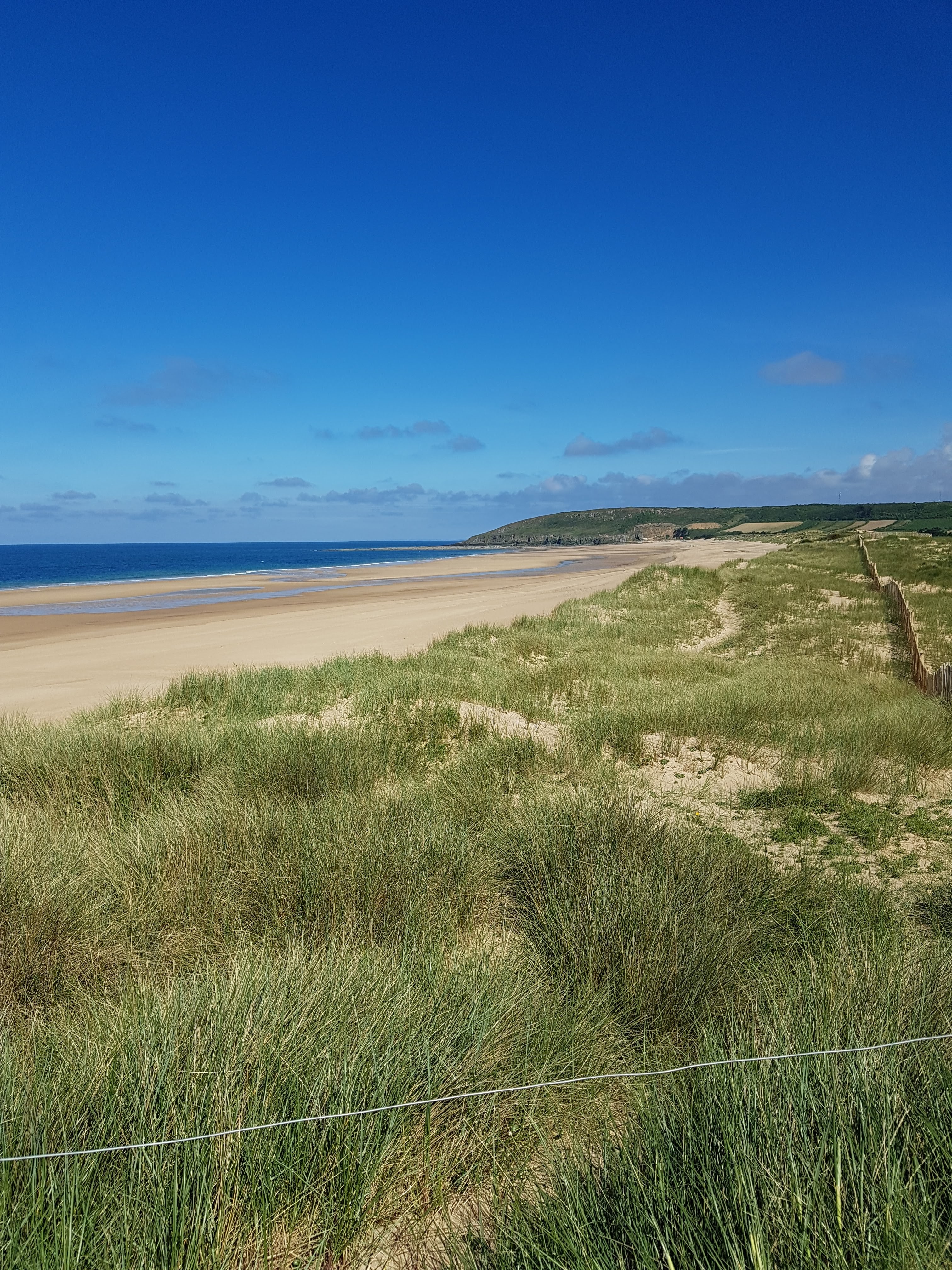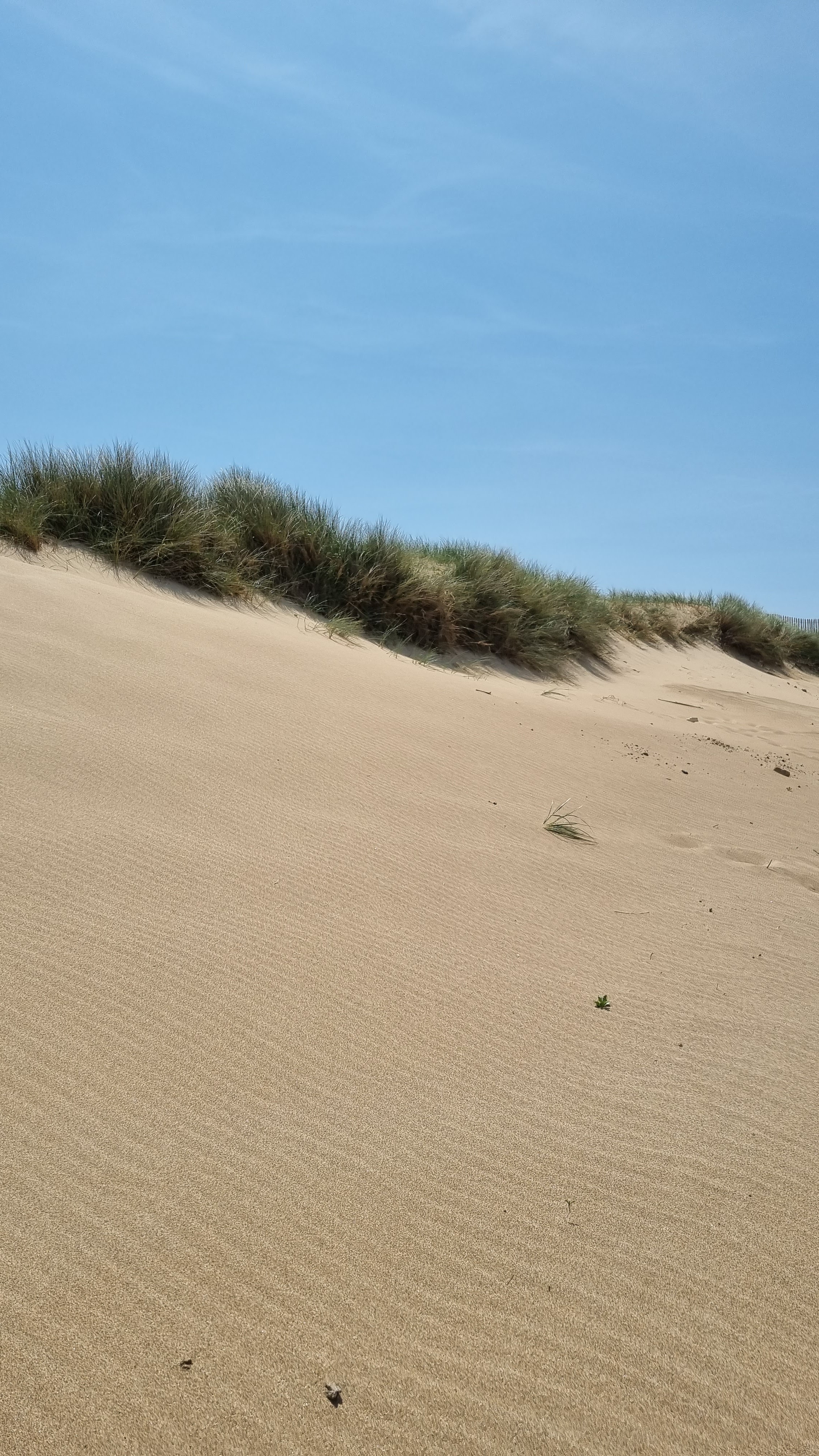 Immense plage de sable fin avec ces dunes. Un paysage magnifique, et des vagues appréciées par les surfeurs.